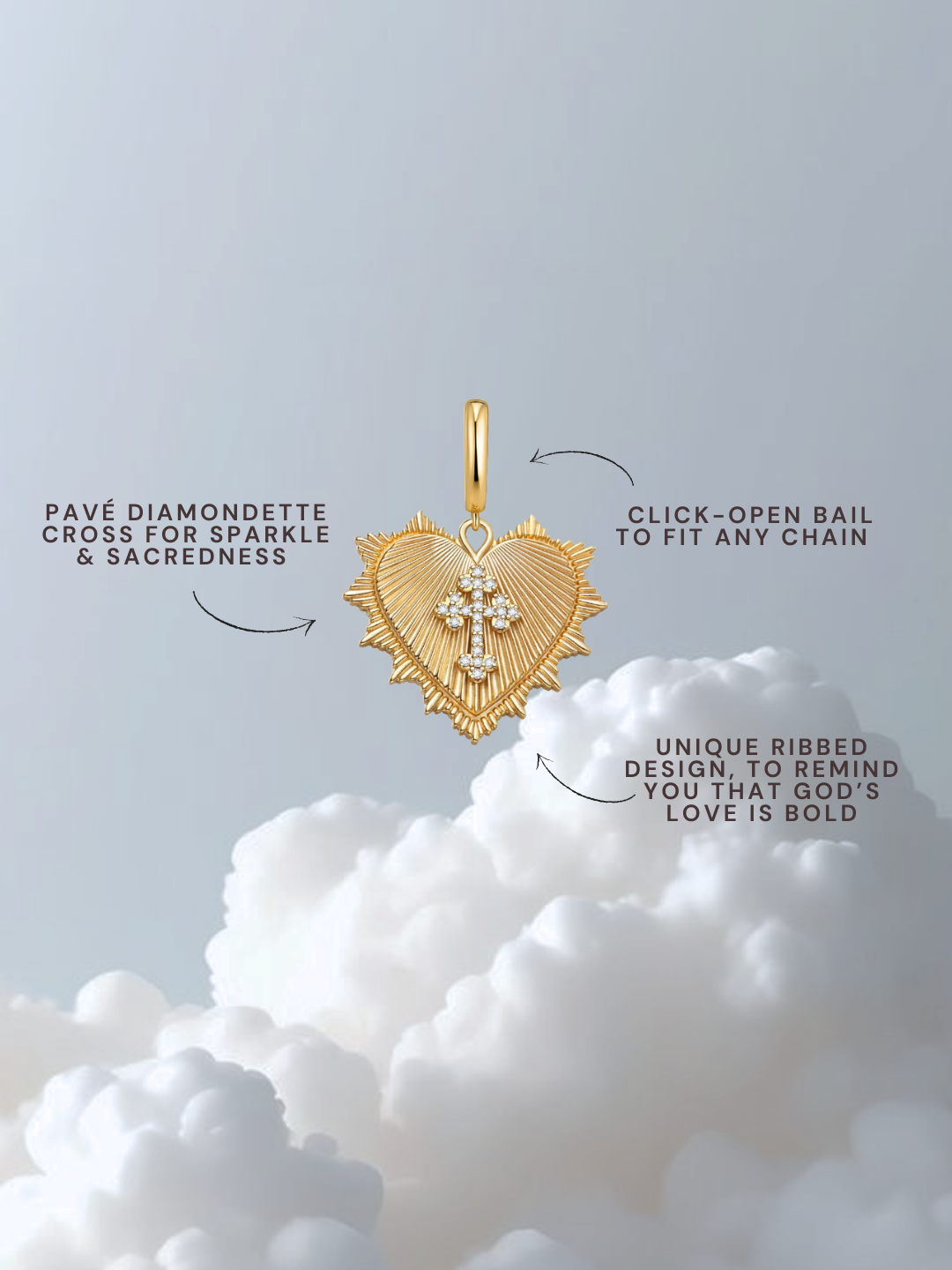 The First Love Heart Pendant is a symbol of God's original, unconditional, never-ending love, the love that started it all. It features a click-open bail with secure closure, designed to fit any chain width so you can style it your way. Wear it on our Figaro Chain, add it to your Sparkle Chain Bracelet, or layer it with the Esther Tennis Necklace for a look that's as abundant as God's grace. This charm is your reminder that God's love is always with you and it's been yours from the very beginning.